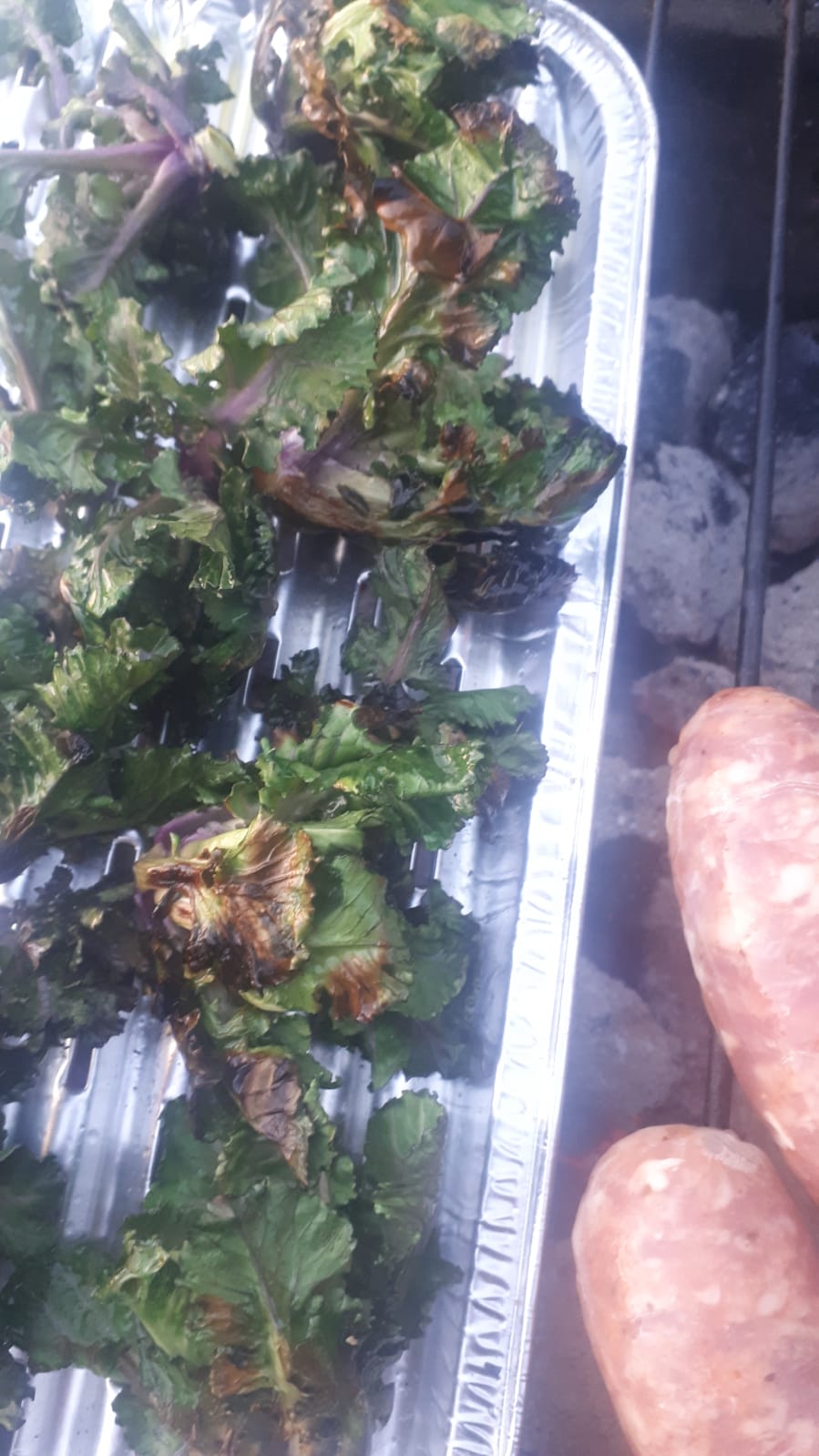Was für ein tolles Gemüse!!! Mit ein bisschen Olivenöl und Salz entfaltet die Kohlkreuzung sein ganzes Potenzial. Die Kombination mit Schweinsbratwurst nimmt dem ganzen das blöde Superfoodsiegel und Schweinsbratwürste sind eh nie verkehrt.